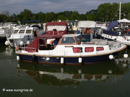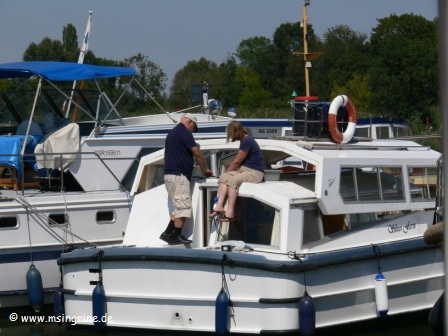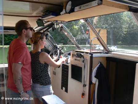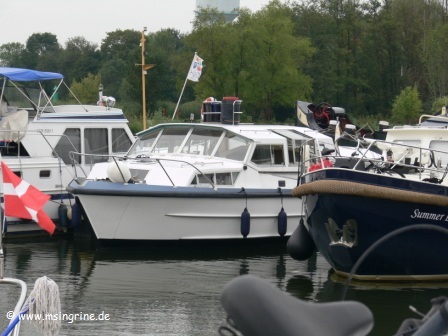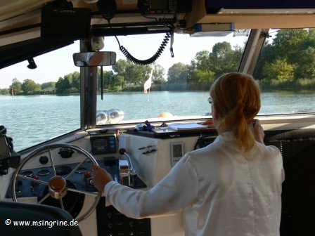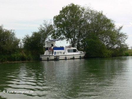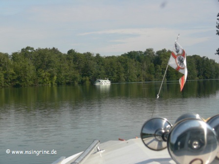 Unterwegs kam uns ein ehemaliges Mietboot entgegen, der einzige Verkehr