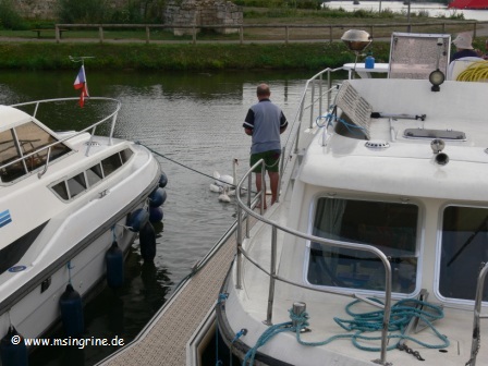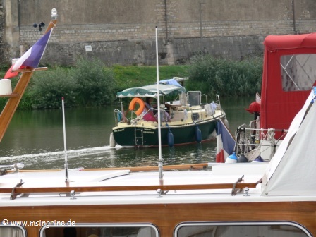 Seite der Saône hatte mal wieder ein Blödboot die Bedeutung der Tonnen