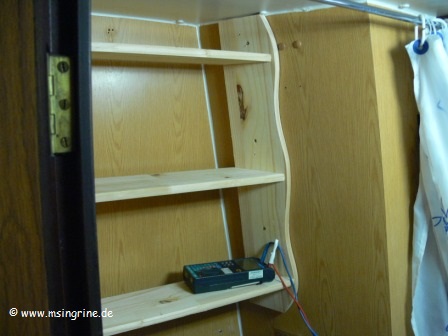 Regal in die vordere Dusche eingepasst, dort sollten alle nur möglichen