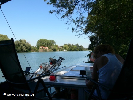 Von oben kam mal wieder ein Unikat Modell Eigenbau die Saône herunter