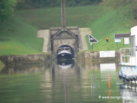 Vor dem Tunnel gab es den ersten Halt, ein Schiff war im Tunnel