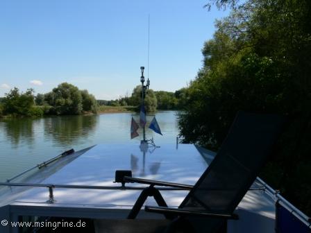 Kaum war der Motor aus war Helga schon wieder im Wasser. Hier war die Saône etwas weiter und sie konnte das gut ausnutzen.