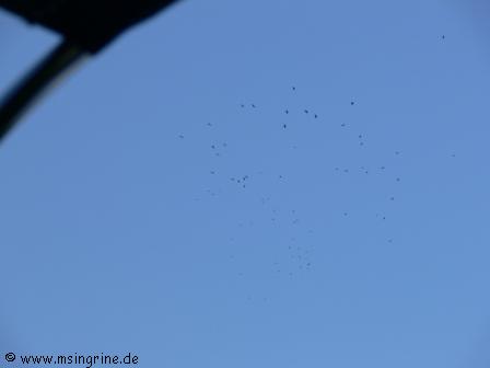 Mittags war es dann fast unerträglich heiß geworden, zum Glück lagen wir im Schatten und es ging ein kleiner beständiger Wind durch die Bäume,es war zum aushalten. Allerdings kreisten kurz darauf Vögel über unseren Köpfen, ob das wohl Geier waren ?? Weiß der Geier . . . .