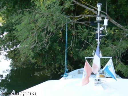 Am 17. und 18. August ging es für das Wochenende nach Savoyeux. Bei unserem letzten Besuch dort vor zwei Wochen waren John und Doreen noch vor Ort und warteten auf das bestellte Bimini, das in der Zwischenzeit eingetroffen war. Nach dem Frühstück für uns und einem Schwarm kleiner Fische zwischen den Booten ging es dann aus dem Hafen heraus, wir wollten uns oberhalb im Bereich der Insel einen schönen schattigen Platz zum Baden suchen, da es im Hafen nicht so viel Schatten gab.