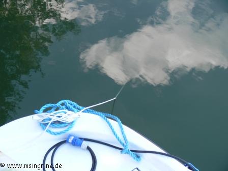 Kurz hinter dem Boot war zwar ein Seerosenfeld, dennoch gab es hier eine Tiefe von fast drei Metern, also ideal für unser Relaxen.