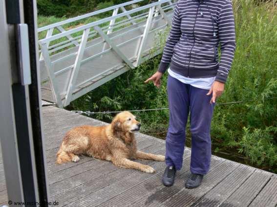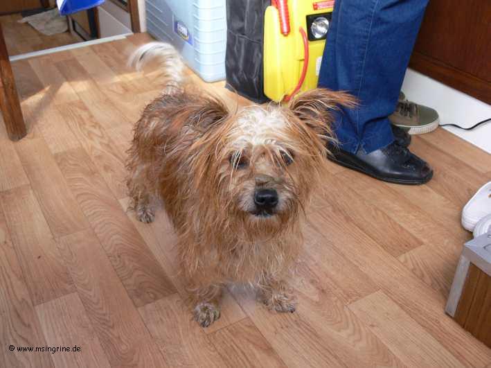 " Hund " Der arme Kerl hatte Glück im Unglück. Bei der Ausfahrt aus dem Tunnel von Pouilly en Auxois / Canal de Bourgogne haben wir ihn aus dem Wasser retten können, er war kurz vor dem Ertrinken.