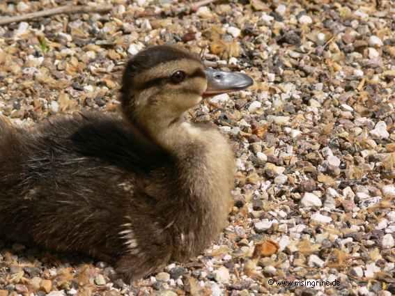 " Kücken " An der Saone wurde dieses Kücken im Bereich einer Schleuse von der Mutter getrennt. Ein Schleusenwärter hat es dann von Hand aufgezogen