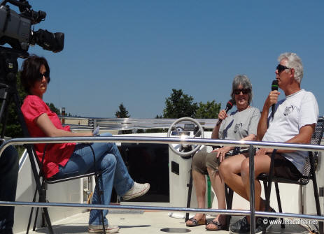 Jean-Pierre und Francine Savoy von der Tabatha, hier bei den Filmaufnahmen im Sommer in St.Jean de Losne. Er betreibt die Internet-Seite le Tabatha, auf der sehr umfangreiche Informationen um die Region und um die Fluß - und Kanalschifffahrt zu finden sind. Die Seite wird täglich aktualisiert, sei es mit Neuigkeiten vom Gare de Eau oder von den Reisen mit der Tabatha. Wenn er in St.Jean liegt betreut er als Hafenmeister die Gastlieger im Hafen von Ets. Blanquart .