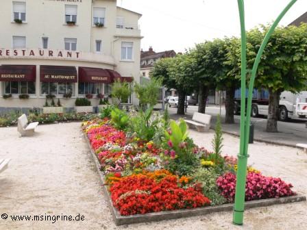 Auch in den Blumenrabatten hat man versucht, das Thema durch Farbakzente aufzunehmen.