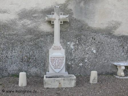 Oben am Turm befindet sich eine Gedenktafel zum 25. Hochzeitstag von Hubert de Salverte und Gabrielle de Marmier , erinnert an den 8. April 1956.