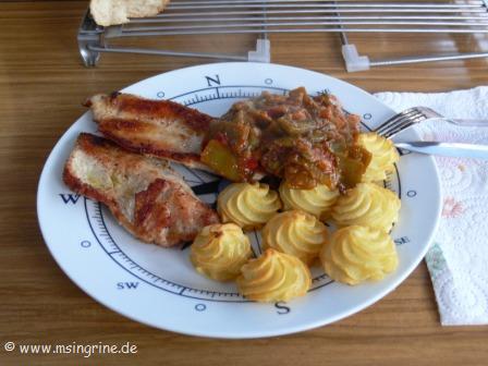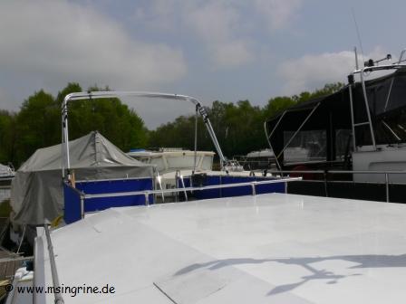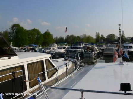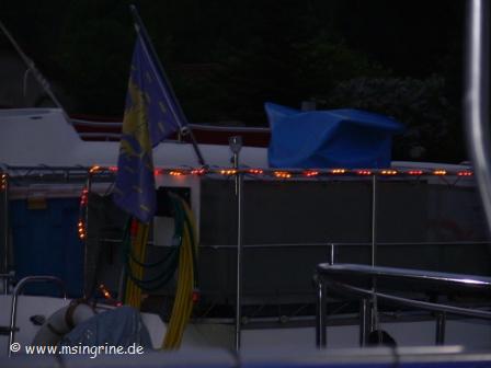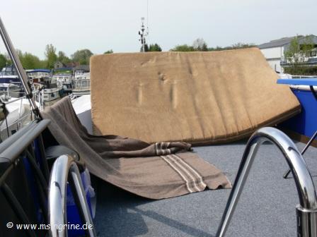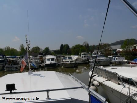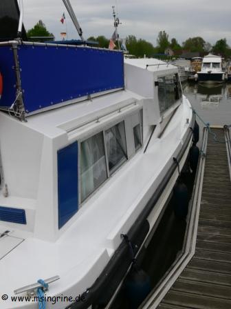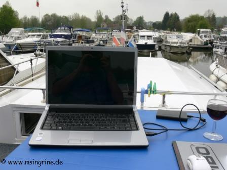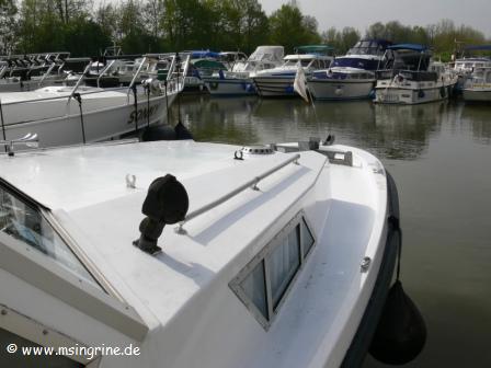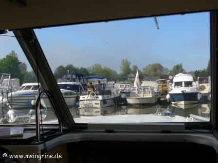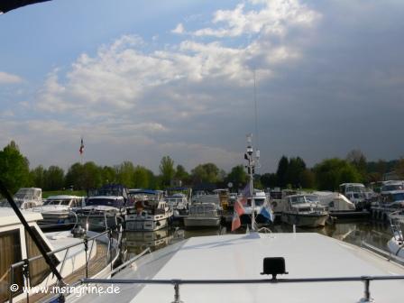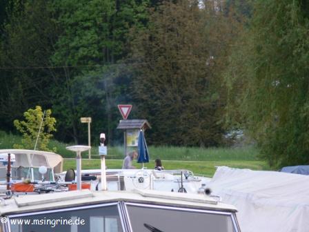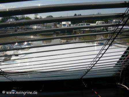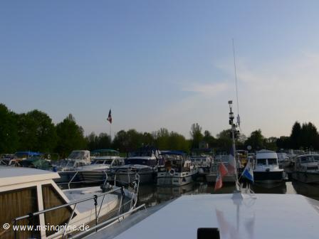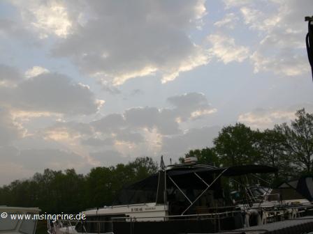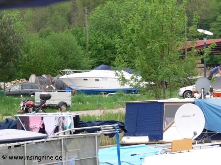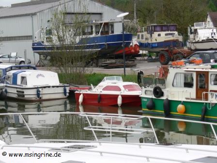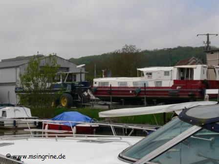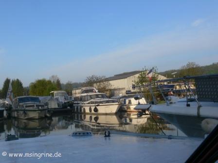 Donnerstag , 9. Mai 2013 Letzter Tag der Berichterstattung nach Düsseldorf 7°° , aktuell 13°C , leicht bewölkt, 1015 hPa , Wind aus SSW mit 3,6 km/h Leichte Bewölkung lässt auf einzelne kurze Regenschauer am Vormittag schließen, hatte zumindest gedacht, die Backbordseite des Decks noch gestrichen zu bekommen. Das Dollbord muss allerdings noch fertig gespachtelt werden und es fehlt mir eigentlich noch Aceton. Daher geht es Heute zurück nach Düsseldorf, der Rasen dort braucht auch noch meine Zuwendung. Jetzt muss ich erst mal einen anderen Ort für das benutzte Geschirr finden, ich komme so schlecht an den Herd solange die Kiste mit dem Zeug davor steht. Damit kann sich Helga dann am nächsten Wochenende beschäftigen, sie hat dann genug Zeit dafür. Jetzt muss noch die Arbeitskleidung im Schrank verstaut werden, das Werkzeug und alle anderen Sachen gehören auch noch weggeräumt. Da liegen sie nun, die letzten Sachen zum Mitnehmen. Das Auto ist gepackt, ging schnell, waren ja nur ein paar Teile. Das ist jetzt der letzte Eintrag hier in der Berichterstattung über die rund 10 Tage, die ich hier zum werkeln an Bord war. È Mittwoch , 8. Mai 2013 645 , aktuell 7°C , leichter Nebel, 1013 hPa , Wind aus NNO mit 0,7 km/h Heute Morgen war es zuerst leicht nebelig, das zog sich aber gegen 8°° stärker zusammen. Mal schauen, ob sich die Sonne da durchbohren kann, wäre nicht schlecht, dann käme ich an Deck noch etwas weiter. ![]() In Auxonne sah es auch nicht besser aus, allerdings scheint dort die Sonne weiter gekommen zu sein. Also Geduld. Um 9°° war es dann soweit, die Sonne hatte sich durchgesetzt. So kann es bleiben. Habe Nachricht von Pascal per Mail erhalten, spielten mit dem Gedanken für lange Wochenende zu kommen. Hat mich sehr gefreut und wäre bestimmt super gewesen. Angebot ging per Mail zurück, und dann das Abwarten, wie sich entschieden wird. Leider wurde dann doch davon Abstand genommen, was soll ich jetzt mit dem ganzen Wein machen ? ? ? Bin doch tatsächlich gefragt worden, ob ich mir ab und an die Bilder von Juri im Netz ansehe. Noch Fragen ? Habe in der Zeit des Wartens auf die Mail die Außenlampe mit dem Bewegungsmelder angebracht, die Einstellung erfolgt dann heute Abend bei Dämmerung. Kein Juri kommt zu Besuch, dann kann ich auch weiter am Deck arbeiten. Der Bug ist fertig, toll, oder ? Mittags kam hier eine Horde Protzbootfahrer an, so 5 oder 6 Stück an der Zahl. Die rauschten schon mit XXL-Schrittgeschwindigkeit durch den Hafenbetrieb, genau so werden sie sich wohl auch im Wasser benehmen, wir kennen das ja. Allerdings brauchten die eine Ewigkeit, bis das die ersten Boote im Wasser waren. Die haben sich dann auch erst einmal am Wartungsponton breit gemacht und sind danach im Rudel verschwunden. 16:58, es ist vollbracht, die Steuerbordseite ist fertig gepinselt. Kurz darauf kam auch das Rudel zurück, bei einem war das Rettungsboot fast größer als das eigentliche Boot. Kurz vor 7°° dann das Gebimmel nach Hause, Rapport. War gerade ins Boot zurück gekommen, war mit John unterwegs und dann durch einen kurzen Regenschauer nass geworden. Ist gut für den Haarwuchs . . . Derweil kamen nebenan schon Weihnachtsgefühle hoch, oder ist das Leuchtreklame für ein bestimmtes Etablissement ? Hab mich dann auch noch an dem saublöden und hinterlistigen Backofen verbrannt. Ein Blick auf die täglich wechselnde Speisekarte, ohne Worte. Mehr gibt es dann nicht mehr. È Dienstag , 7. Mai 2013 7°° , aktuell 8°C , Nebel, 1015 hPa , Wind aus W mit 0,0 km/h Heute sieht es Draußen weis aus, Nebel ist angesagt. Vielfach hatten wir hier danach einen sehr heißen Tag erlebt, mal schauen was kommt. Muß nachher runter nach Dampierre, Grundnahrungsmittel gehen aus, Brot und Wein fehlen, nicht vorzustellen ! ! Dann muß ich mir einen Plan zurecht legen, wie die Klamotten am Besten wieder in die Backskiste kommen, was wird wann wo benötigt ?? Für Anregungen bin ich gerne offen, schreiben Sie mir an : MS Ingrine, derzeit im Wasser an D 10 Morgens wird erst einmal im Internet nachgesehen, was es Neues gibt. Habe ein Foto von Juri auf der Schaukel erwischt. Gestern waren es Gerüchte, Heute kam die Gewissheit: Der Canal de Centre ist wegen eines Dammbruches auf unbestimmte Zeit gesperrt. Eine alternative Umgehung über den Canal Entre Champagne et Bourgogne ist wegen der Chomage bis Ende Mai nicht möglich. ![]() Ein Bild vom Hafen in Montchanin, wild durcheinander gewürfelte Boote. Grund ist die Unterspülung eines Überlaufwehres, dass dann den Druck nicht mehr halten konnte und auf einer Breite von 2,7 m nachgab. Durch die Unterspülung ist auch eine Landstraße betroffen. Die Biggels macht sich heute morgen auf dem Weg, sie hatte vorne am Steg übernachtet. Wegen der Feuchte beim Nebel war ans Streichen an Deck nicht zu denken und so wurde nach dem Einkaufen die hintere Kiste wieder eingeräumt, allerdings wurde dabei auch direkt einiges entrümpelt. Bei der Werft geht es nach wie vor mit Vollgas weiter , ein Boot ist fertig und kommt ins Wasser, schon kommt ein anderes Boot an Land. Mittags konnte ich dann meine mediterrane Teigspeise an Deck zu mir nehmen, die Sonne war mit gnädig. Der Himmel war so blau wie ( ich ) mein Tisch auf dem Deck, und so habe ich mich einfach in die Sonne gesetzt und bin etwas eingedöst. Ich hatte mich dann endlich aufgerafft und wollte an Deck loslegen, als dicke Wolken aufzogen. Etwas hat es auch getröpfelt, daher war wieder Thema Innen angesagt. Ich habe dann den GS ausgebaut und das Kontrollpanel fertig gestellt, links Anzeigen für GS , rechts die für den Boiler. Hans und Trix sonnen sich derweil am Strand am Mittelmeer, Trix hat Heute tagsüber Ihre Seiten aktualisiert. Sie sind jetzt in Bereichen, die ich selber von meinen Touren dort kenne. Vorne kommen jetzt des öfteren MB an und beleben die Anlage etwas. Allerdings bekommt man derzeit kaum mit, wenn ein Boot den Hafen passiert. Kurz vor der Skype-Time zog sich der Himmel beden