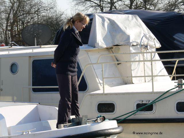 Helga B. , Frosch an Bord, Schleusenbeauftragte , Chef de Kaffeemaschine , Spezialistin für olympische Anlegemanöver , Liegestuhltesterin, Baguettebeauftrage und Grillbedienerin