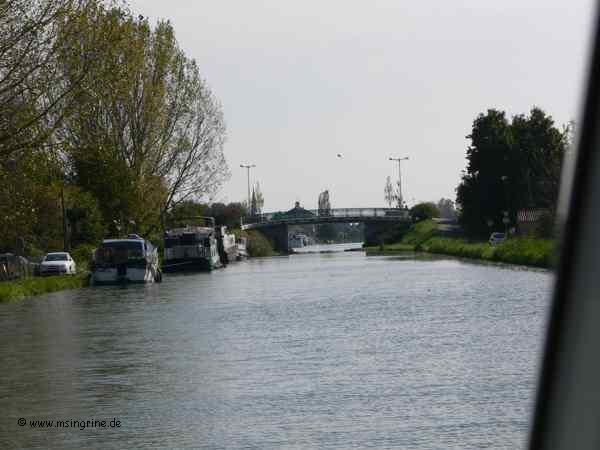 Dann die Brücke über die D 20 , die Einfahrt in den oberen Kanalhafen.