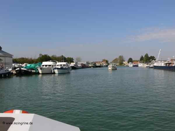 Noch beeindruckender als die Ankunft in Dijon : der Kanal weitet sich, links und rechts liegen dutzende Boote nebeneinander wie am Nil, und dann die größeren Schiffe in der Werft.