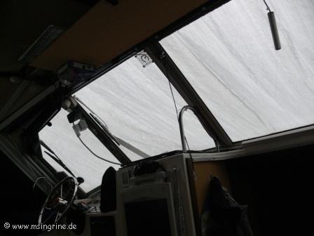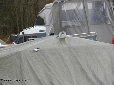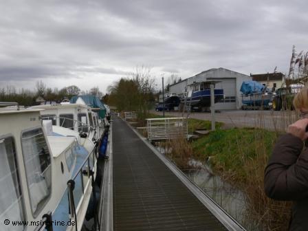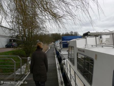Lange ersehnt und nun endlich da : Der erste Besuch in diesem Jahr in Frankreich und auf dem Boot. Seit dem 23. November lag die Ingrine unter der Plane im Winterschlaf. Die erste Frage galt dem Zustand der Plane, hatte sie die Stürme und das Wetter bis heute überstanden ? Und wie sah es darunter aus ?? Aber es war eigentlich Alles ganz gut. Zwar war die Plane an einigen Stellen durch die Aufbauten wie zum Beispiel dem Mastschuh angescheuert, aber sie hing nicht wie etwa befürchtet in Fetzen vom Boot. Es hatte sich auch kein Wassersack gebildet, der Regen war einwandfrei abgelaufen. Dennoch war der Winter im Hafen nicht ohne Spuren vorbei gegangen. Gegenüber der Hafenanlage war die große Informationstafel dem Wetter zum Opfer gefallen. Die Batterien wurden geprüft und das Ladegerät wurde gestartet. Zusätzlich wurde die Solaranlage zugeschaltet um das Bordnetz aufzuladen. Die Heizung wurde in kleiner Stufe in Betrieb genommen, danach ging es nach Gray zum ersten Einkaufsbummel in 2014. Am Abend gab es dann Filet vom Bresse Huhn, frisches Brot und einen großen Salatteller dazu. Der Salon war schön mollig durchgeheizt, so konnte man das Essen gut geniessen. Der kleine WLAN-Repeater, der im Herbst gekauft wurde, funktionierte auch perfekt, über Video-Telefonat konnten wir mit der Enkeltochter zu Hause sprechen, die ganz aus dem Häuschen war, ihre Oma und Opa Michi im Telefon zu sehen. Wir machten uns dann im Hafen ein allgemeines Bild von den anderen Booten. Es gab einige Hinweise darauf, dass es hier doch wohl recht stürmisch gewesen sein mußte, einige leichte Schäden an den Planen oder ausgerissene Befestigungsleinen konnten wir feststellen, aber auch eine komplett abgerissene Plane bei einem englischen Nachbarboot bei uns am Steg, die notdürftig gesichert worden war. |