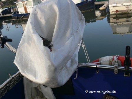 Die Schutzabdeckung vom Aussenbordmotor unseres Beibootes war an einer