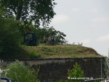 Oben auf der alten Mauer der Befestigung wurde eifrig das Buschwerk