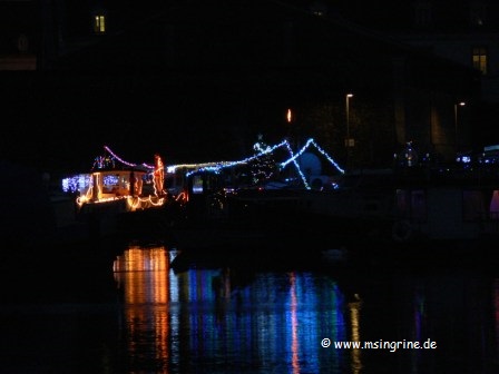 Unzählige Lichterketten und Weihnachtsbäume verzierten so manches Boot.