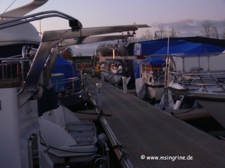 Im Hafen war so langsam die Weihnachtsbeleuchtung auf den Booten abgebaut