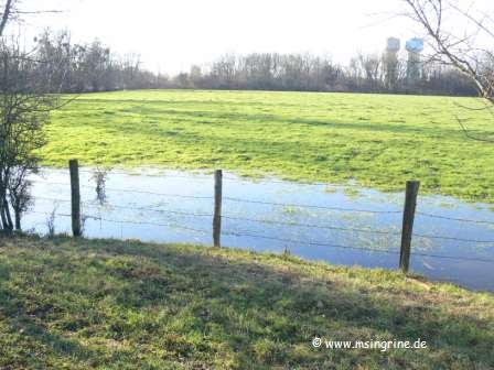 In den Senken der Wiesen stand noch immer der Rest vom Hochwasser, das