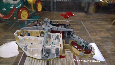Ausstellung von Konstruktionsbausteinen, die eine Weltraumsaga oder