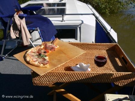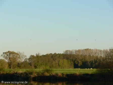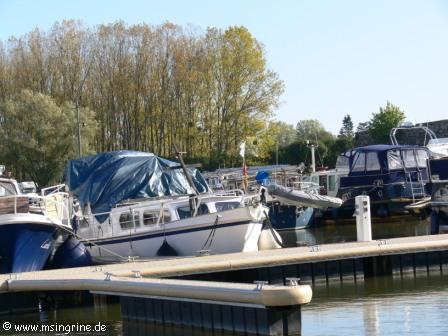 Sa 18 Okt. 2014 Die ganze Woche wurde der Wetterbericht beobachtet, Sonnenschein war für Auxonne am Wochenende angekündigt und so ging es Freitags nach der Arbeit zum Boot. Der Samstagmorgen begrüßte uns mit einem tollen blauen Himmel, die Entscheidung zu fahren war kein Fehler gewesen. Trotzdem macht sich die Jahreszeit langsam bemerkbar, es lagen keine Boote von Freitag auf Samstag am Gastlieger. Auf der Hazelwood hat Roy den Kamin für den Winter montiert, scheinbar rechnet er bereits in den nächsten Wochen mit kälterem oder schlechterem Wetter. Oben an unserem Grillplatz waren die Bäume und Sträucher mit roten und blauen Beeren Reif für die Ernte, die Vögel werden dass wohl erledigen. Ursprünglich wollten wir Grillen, aber in der Sonne waren wir zu faul dazu und so gab es eine Mafia-Torte. Während ich die Gegend hinter den Bäumen erkundet habe war Helga auch körperlich aktiv gewesen, sie hatte den Liegestuhl an Deck gedreht . Über den Bäumen haben wir dann noch drei Heißluftballons entdeckt, die im Bereich von Dole wohl zu Landung ansetzen würden. Ein schönes Bild. So 19 Okt. 2014 Am Sonntagmorgen ging es mit dem schönen Wetter weiter. Nachdem der Dunst am Morgen verzogen war sah es genauso aus wie am Tag zuvor. Wohin man im Hafen auch schaute, überall sah man verpackte Boote, immer weniger Leute waren unterwegs. Dort lag ein einzelnes kleines Segelboot, das laut Beschriftung auf dem Weg von London nach Beirut war. Ein doch seltsames Reiseziel. Der kleine Segler ist ohne Motor unterwegs, am Vortag hatten wir gesehen, wir er im Schlepp hinter einem schwedischen Motorsegeler gezogen wurde. Bin gespannt, wie lange die Reise dauern wird, ob man es erfährt ? Mal ein anderer Blick auf die Brücke von Auxonne. Und dann sah ich durch das Fernglas wie Helga zurück in den Hafen kam, hat sie doch den oberen Weg genommen. Bloß das Boot war weg. Ich bin dann zurück gefahren und sie hat mir beim Anlegen geholfen. Nett, nicht ? |