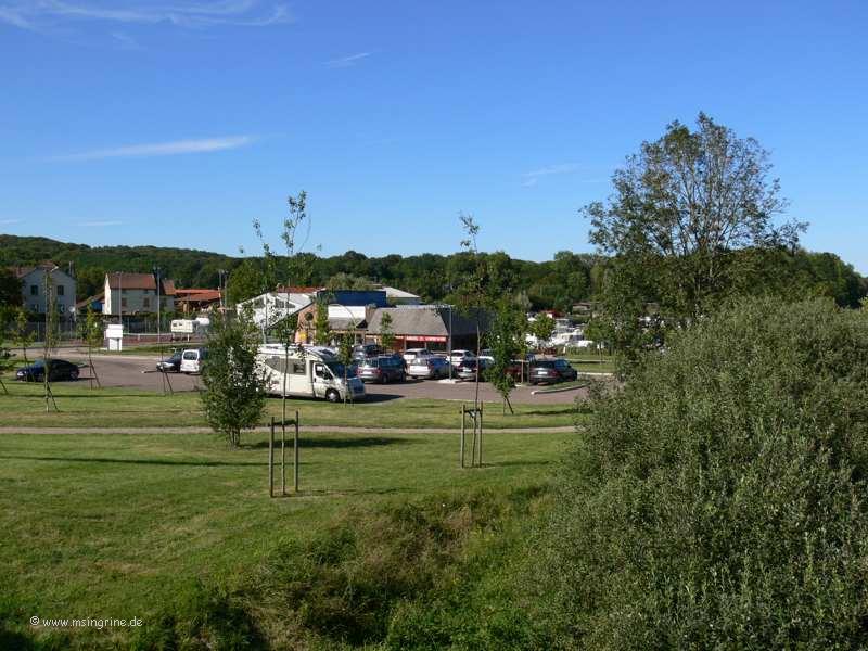 Parkplatz und Capitainerie vom Weg zur Brücke aus betrachtet
