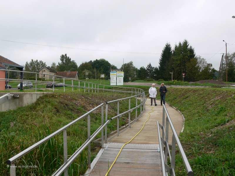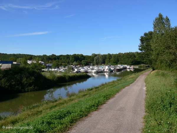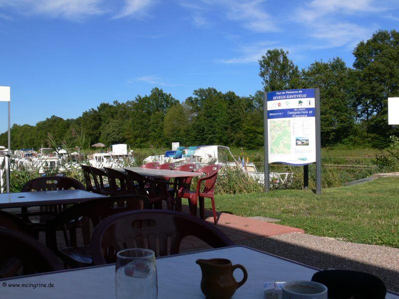 Aus dem Tunnel von Savoyeux kommt man über die Derivation zum Hafen, der dann auf der Backbordseite liegt. Durch die Schleuse auf der anderen Seite des Tunnels und ein weiteres Hochwassertor am anderen Ende des Kanals zur Saône hin ist die ganze Anlage Hochwassersicher.