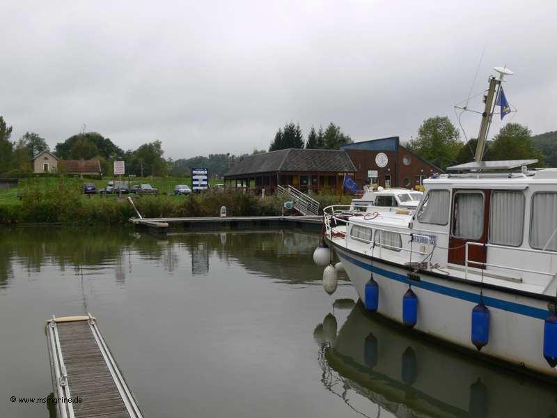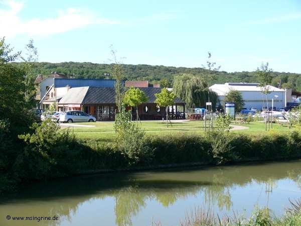 Hier die Capitainerie und die Bar, Ansicht vom gegenüber liegendem Kanalufer aus.
