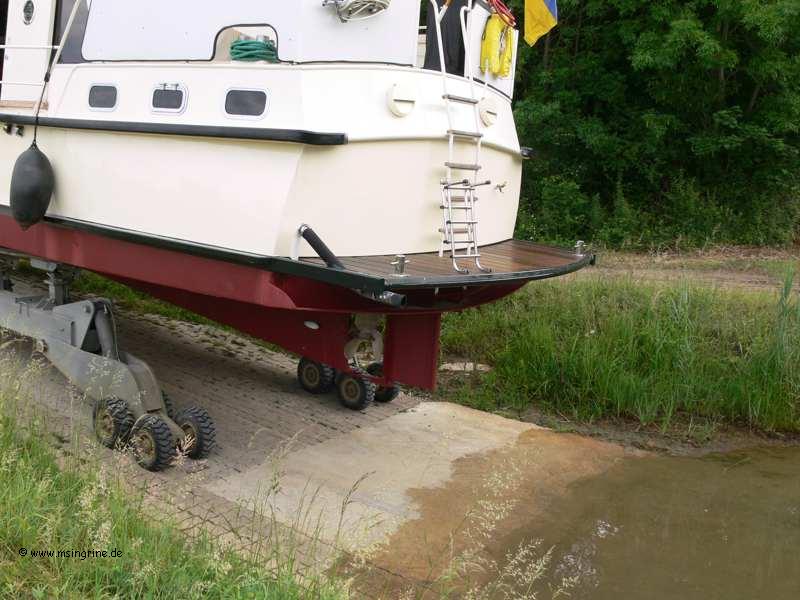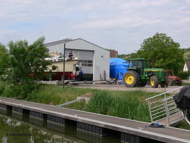 Auch wenn man beim Unterwasseranstrich selber Hand anlegen möchte, kein Problem, leistungsstarke Traktoren ziehen fast jedes Boot aus dem Wasser, es kann aber auch ein Kranwagen organisiert werden.