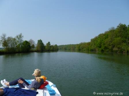 Kein Schiff weit und breit, der ganze Fluss gehört uns alleine, aber wohl nicht mehr lange, wir nähern uns allmählich Gray und damit der Mietbasis von LeBoat.
