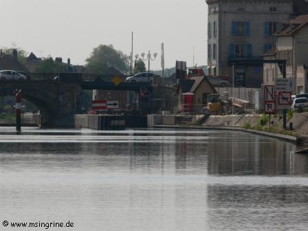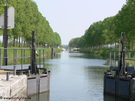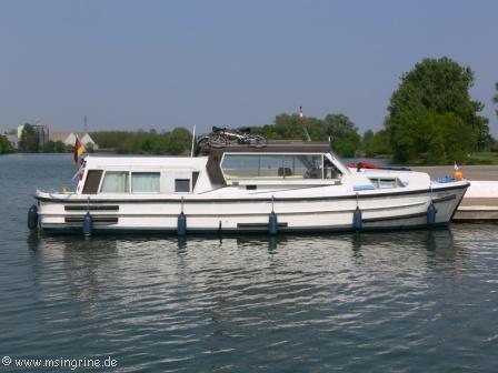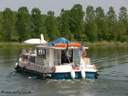 Kurz vor der Schleuse von Rigny ist ein kleiner Halteponton, hier haben wir das erste Mietboot an diesem Tag passiert, die Mannschaft hielt dort eine Mittagspause ab.