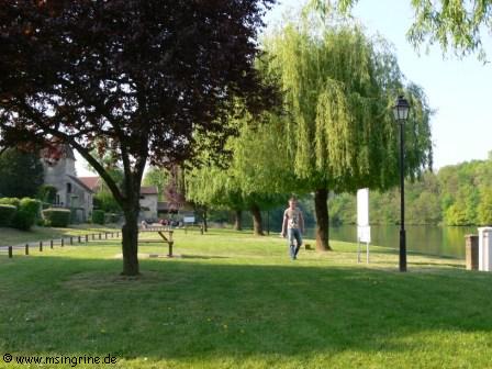 Nach dem Frühstück an Bord wurden zuerst ein paar Einkäufe in Dampierre für den Tag getätigt, dann ging es los. Hier haben wir die schöne Eisenbrücke von Prantigny passiert. Noch einmal ein Blick zurück, keine Verfolger ........ Die Strecke kennen wir allmählich, die Gärten am Ufer nach der Engstelle hinter Rigny kündigen langsam die Ankunft in Gray an. Patrick war mit der Ronfleur mit Gästen unterwegs, er fährt mit seinem Boot Ausflugsfahrten ab Gray, in unterschiedlichen Längen und Umfang, ganz wie man es erwünscht. Wir haben mit der Ingrine dann am selben Platz auf seine Rückkehr gewartet, wo das Boot im Herbst zuvor für eine Woche auf uns wartete. Der Bereich an der Schleuse sah dann nicht so einladend aus, die Schleuse wurde seit dem letzten Herbst modernisiert. Die Ausfahrt aus der Schleuse war ohne Probleme. Hinten auf dem Damm kann man einige dicke Baumstämme sehen, die das Hochwasser im Winter hier angespült hat. Hier haben wir dann angelegt und sind in den großen Supermarkt gegangen, der sich auf der anderen Straßenseite befindet, um unsere Vorräte für die Tour zu besorgen. Der Grillplatz und die Halte waren sehr gepflegt und wir hatten Gäste, die sich aber erst später dazu gesellten. Einer der schönsten Plätze die wir in der Region kennen, traumhaft unter den Weiden, aber leider meistens besetzt. Hier ein Blick zurück auf den ganzen Bereich, hinter uns war dann doch noch ein Boot eingetroffen. Diese farbenprächtige Ente am uns dann besuchen, sieh etwas nach einer aus Japan bekannten Art aus. |