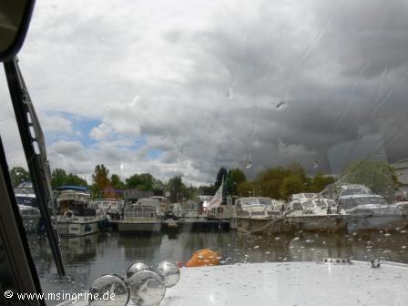 Unser Reiseziel, die Stadt Gray kam dann kurz nach 16°° in Sicht, dicke Wolken am Himmel begrüßten uns auch hier, aber die Passage der letzten Schleuse konnten wir trocken erleben.