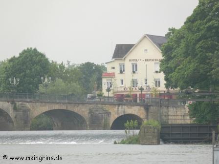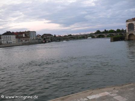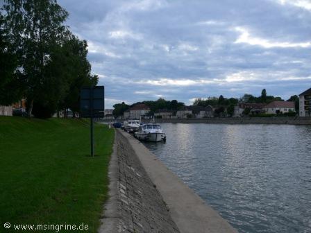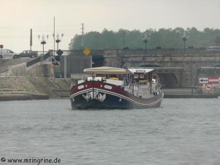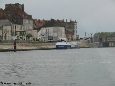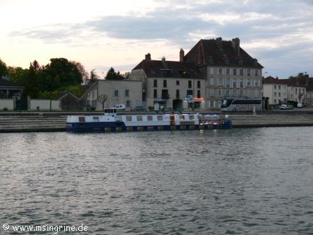 Gleich gegenüber dem Quai vor der Einfahrt zur Schleuse konnten wir dann auch erstmalig das neue Hotelschiff sehen, das Saône hoch bis nach Port sur Saône befährt. Diese Strecke wurde erst in diesem Jahr in Betrieb genommen.