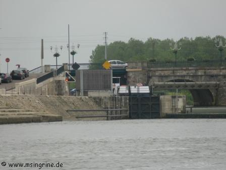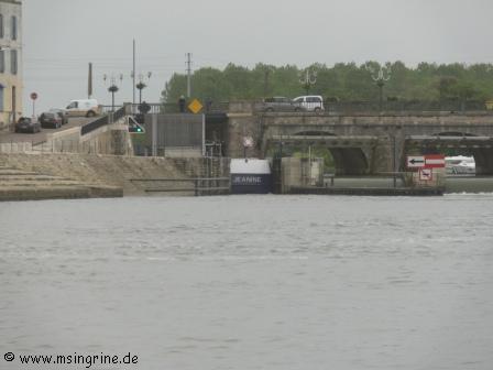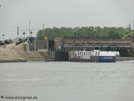 Schließlich wurde nach VNF telefoniert, die dann die Schleusung freischaltete. Langsam schob sich dann die Jeanine Richtung Schleusenkammer.