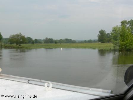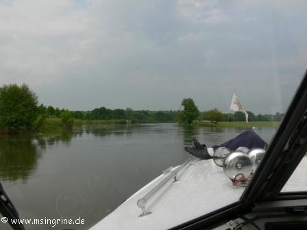 Ein Blick Richtung Stauwehr und Schleuse und man konnte sofort erkennen, das hier nach wie vor riesige Wassermassen den Fluss herunter kommen, die Hochwassergefahr ist wohl immer noch nicht gebannt.