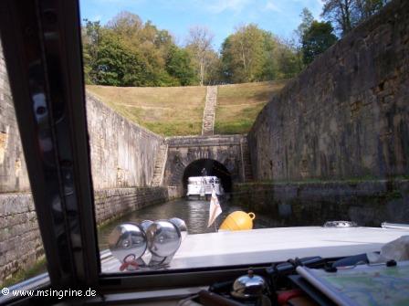 Und hinein geht es, Ampelgeregelt. Ab der Schleuse geht es nur in eine Richtung