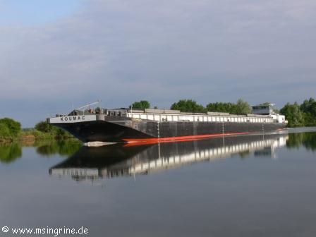 Wie üblich war ich am Morgen früh auf um die Natur zu genießen. Gegen 7:55 dann ein ungewöhnliches Rauschen, die Koumac, ein Frachter kam um die Ecke gebogen. Sie ragte hoch aus dem Wasser raus, eine Leerfahrt, dementsprechend hatte sie ein Tempo drauf.