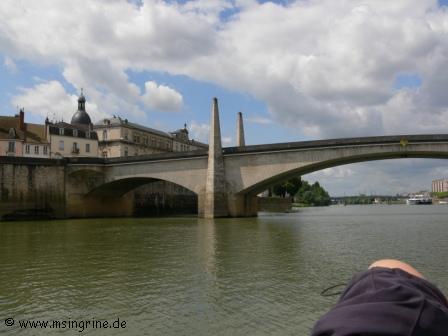 Dann kam die letzte Flussbiegung und danach war der Blick frei auf Chalon und die Pont de Bourgogne.