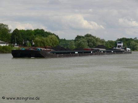. . . dann kam die Atlas, ein mit Kohlen vollbeladener Schubverband mit zwei Leichtern die Saône hoch.