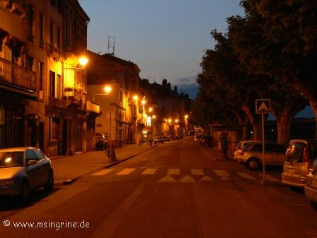 Langsam geht die Sonne unter und die Wirkung der Straßenbeleuchtung macht sich bemerkbar.
