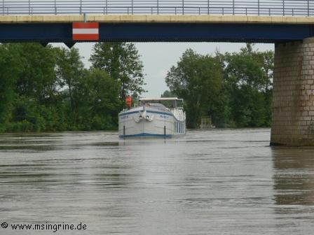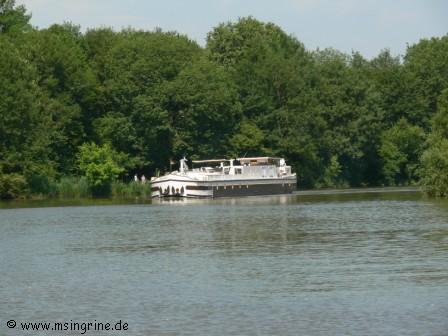 Oberhalb von Gray kam uns die Diegéne auf der Saône entgegen, ein privates Hotelschiff.