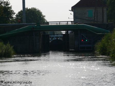 Um 9:30 haben wir dann die Tagesetappe in Angriff genommen, etwa 12 Km und 6 Schleusen lagen vor uns. Aus Ecl. 72 kam und das Schiff "Blauer Rabe" entgegen, ein ehemaliger Schlepper aus Deutschland, dann ging es für uns los.