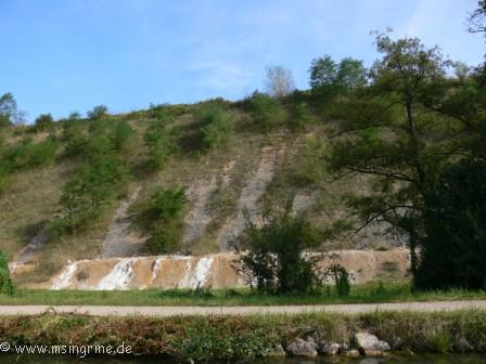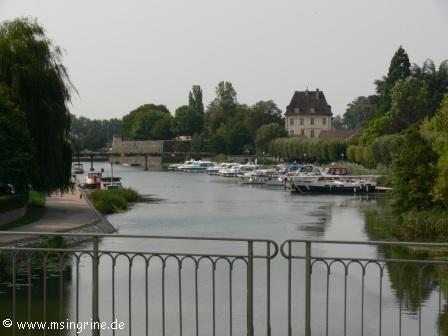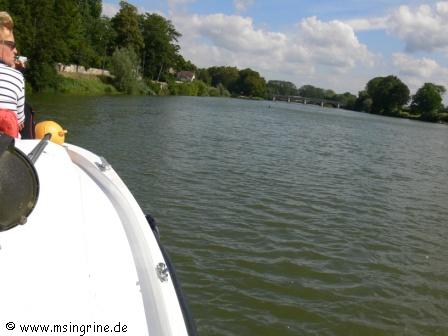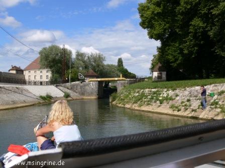 Der Doubs ist hier aber durch Untiefen und Felsen versetzt, mehrere Tonnen markieren den Verlauf und führen uns dicht ans Ufer heran.