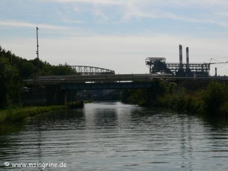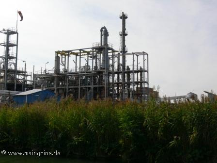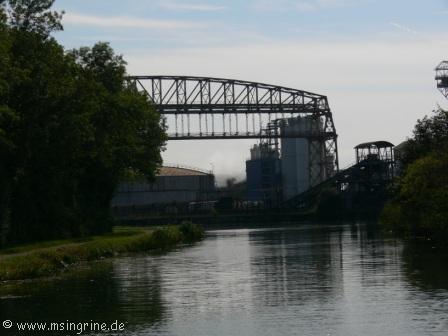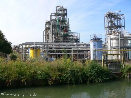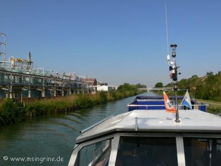 Gegenüber dann die eigentliche Chemiefabrik. Vor der Passage bekamen wir an der Eingangsschleuse zum Canal Rhône au Rhin ein Merkblatt mit Sicherheitsanweisungen im Gefahrenfall.