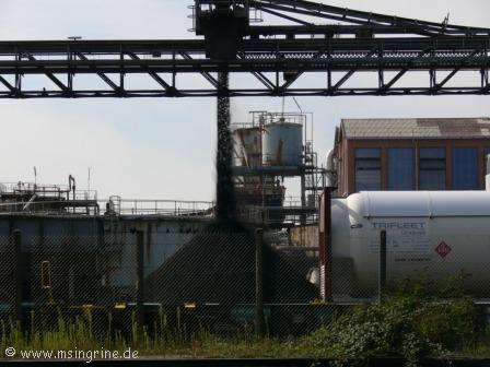Verschieden Rohstoffe, wie hier Kohle, wurden offen Angelandet.