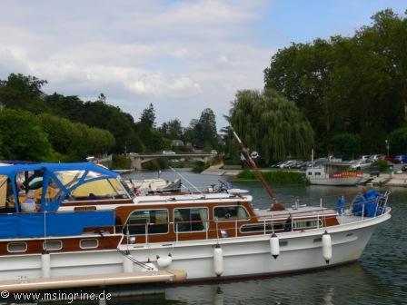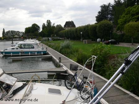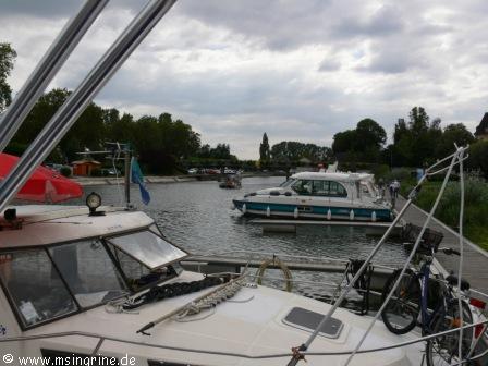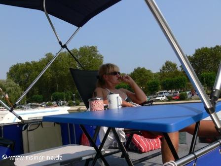Das Ufer auf der anderen Seite ist für Hotelschiffe vorgesehen, das sollte man meiden. Ein größeres Einkaufcenter ist auf der anderen Seite der Doubs unterhalb der Schleuse, aber ca. eine Viertelstunde Fußweg entfernt, wieder etwas für den Bollerwagen. Aber das hat uns nicht abgeschreckt, dafür gab es frischen Salat und Grillfleisch, diverse Getränke und Snacks im Kühlschrank zu verstauen.