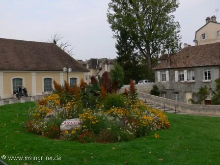 Über die alten Wasserkanäle geht es über die Rue du Prélot ins das Zentrum. Die überdachte Markthalle ist allerdings mehr den Gaumenfreuden vorbehalten, frische Produkte aus der Region werden hier angeboten. Man kann sogar direkt an kleinen Ständen diverse Snacks verzehren. Für das Abendessen haben wir uns hier mit frischen handgemachten Gnocchi eingedeckt. An einem Stand wurden kleine Holzeisenbahnen, bestehend aus einzelnen Buchstaben angeboten. Man konnte sich die Vornamen zusammen setzen lassen, klar, das wir die kaufen mußten. Oben am Place Jules Grevy gab es dann einen schönen Brunnen zu bestaunen, Gegenüber ist der Eingang zum Parc Saint-Maurice, den wir dann besucht haben. Vom hinteren Ende der Allee hat man ein schönen Ausblick auf den Hafenbereich. A Louis Pasteur , ne a Dole le 27. Decembre 1822 Zum Gedenken an Louis Pasteur, geboren in Dole am 27. Dezember 1822 Er galt als Vorreiter der modernen Impfung, Entdecker verschiedener Virus und Infektionskrankheiten, hier sei nur die Tollwut erwähnt. Ein von Ihm entwickeltes Verfahren zur Haltbarmachung flüssiger Lebensmittel, die Pasteurisierung, trägt noch heute seinen Namen. Die Wasserbecken zusammen mit den von Bäumen beschatteten Wegen sind kühler Bereich inmitten der Stadt, die in der Mittagszeit auch von vielen Büromitarbeitern besucht werden. Der Hang geht dann in eine Wiesenlandschaft über . . . Jetzt ist man an der Ruelle Saint-Maurice ausgekommen und ist damit unten am Kanal angelangt. Wir sind dann allerdings nicht zum Boot zurück, sondern entlang dem Quai Pasteur zurück in die Gassen der unteren Altstadt. Hier bogen wir links ab in die Rue Pasteur. Im Untergeschoss gibt es einen Einblick in die alte Gerberei, die sein Vater Jean Joseph Pasteur hier einst betrieben hat. Vom Kanal blickt man zum alten Hintereingang, in dem diese Büste ausgestellt ist. Rechts an der Mühle kann man heute noch in die alten Gänge einsteigen, die zu den alten unterirdischen Waschplätzen führen. Aus der Oberstadt führen einige Kanäle die Quellwasser hier herunter, die dann in riesigen Bottichen den Waschfrauen dienten. Das einfache Volk war zugleich aus dem Blick der feinen Gesellschaft, die über die Bürgersteige wenige Meter darüber verweilten. Über diese Gasse gelangt man wieder auf die normalen Wege in der Stadt. Über die Rue du Prélot sind wir dann zurück zum Hafen. Dann war Siesta angesagt, wobei darüber diskutiert wurde, wie die Gnocchi nachher zubereitet werden. Ich habe dann für eine Weissweinsauce plädiert . . . |