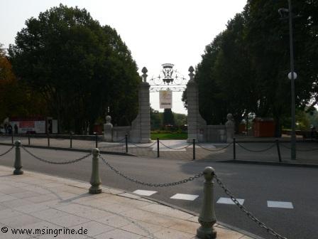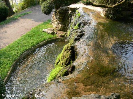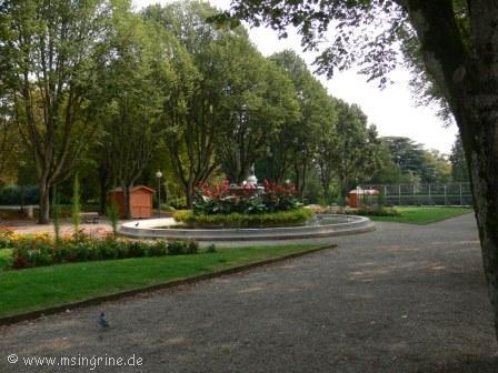 Eine schöne schattige Baumallee führt zuerst an eine Brunnenanlage heran, hier hatten sich einige Tauben zum Baden eingefunden.